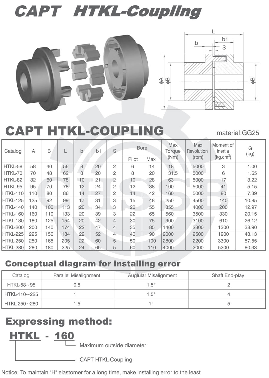 產品范圍: 歐標:(HTKL) 公制尺寸產品(適用于歐標市場) HTKL型聯軸器